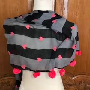 Betsey Johnson Striped Scarf with Punk hearts and PomPoms