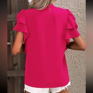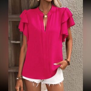 Boho Butterfly Flutter Sleeve Key Hole Tie Back Top Blouse