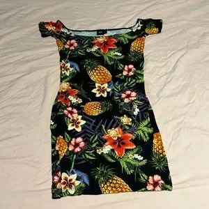 ASOS bodycon mini dress hawaiian flowers and pineapples. Size 4. Preowned