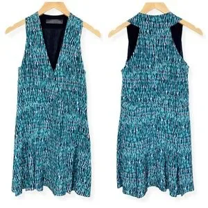 Proenza Schouler Teal Black Sleeveless Silk Print Wrap Mini Dress