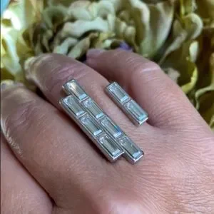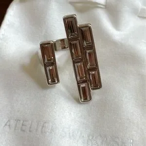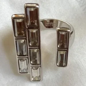 New authentic signed atelier Swarovski fluid Collection Azzurro open ring, size 55(7), silver with white crystals crystals.