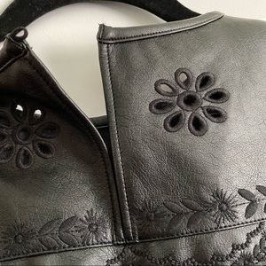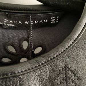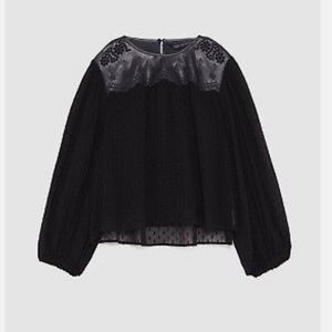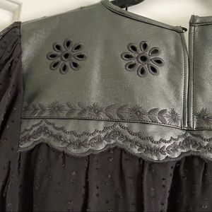 Sheer faux leather embroidered blouse