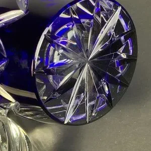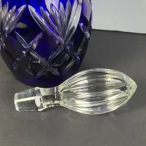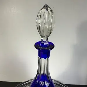 Dresden Crystal Bleikristall Blue Wine Decanter Cut to Clear Germany 14 in #BA85