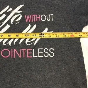 🌟FINAL PRICE🌟 GILDAN Ultra Cotton ballet t-shirt. Great Gildan quality 50/50 cotton/polyester blend. Charcoal heather gray with ballet pink and white graphics. No flaws, like new. Only worn a few times. Washed in cold on gentle cycle.
