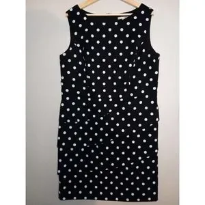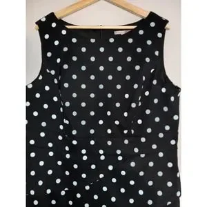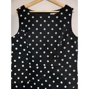 *Signature Sabrine Formal Career Pencil Polka Dot Sleeveless Black Blue 16W Dress