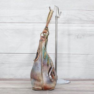Vintage Anuschka Multicolor Hand Painted Leather Purse Hobo Shoulder Handbag