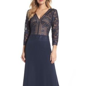 Tadashi Shoji Lace & Crepe A-Line Gown