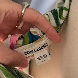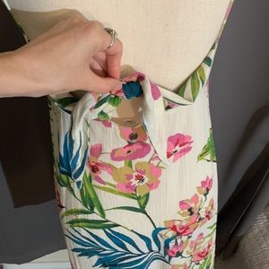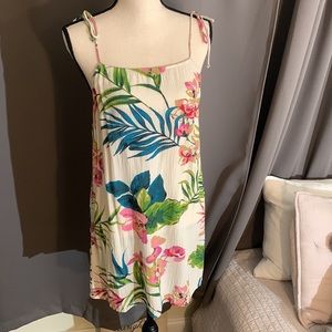 Hold on to the vacay high with tropical florals and easy silhouette. A relaxed cut is covered in island florals and topped with tie top straps.