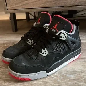 Gently worn Jordan 4 Retro in Black/Fire Red-Cement Grey. Size 6.5Y.