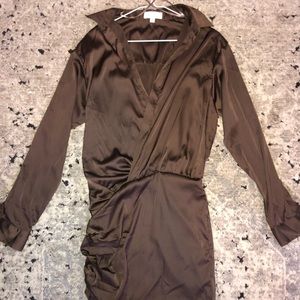 Brand New Dress from L’ABEYE, brand is MABLE. Brown Satin, Gold Buttons on sleeves, Size Medium. Never Worn, in Perfection Condition