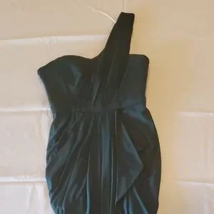 BCBGMaxAzria cocktail dress dark green one shoulder
