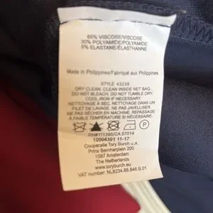 Tory Burch sleeveless swing colorblock dress — cream, navy, and maroon. Two pockets in the front. Fabric is medium weight with stretch. Great for any season. Approximate measurements: length—38”; bust— 40”; waist — 43”