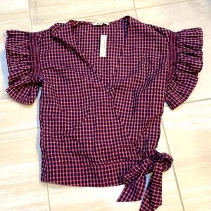 Madewell | NWT Plaid Flutter Sleeve Blouse