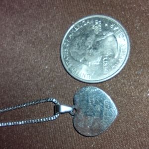 Hypoallergenic Stainless steel necklace with "A piece of my heart is in heaven" charm. Measures approximately 14" long. The back is empty but can be engraved.