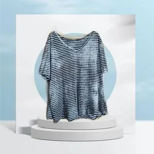 Terra & Sky 3x Black and Gray Striped Top V neck Short Sleeve. Distressed fabric. Light Fabric. Cute. Loose Fit. NWOT