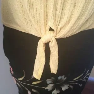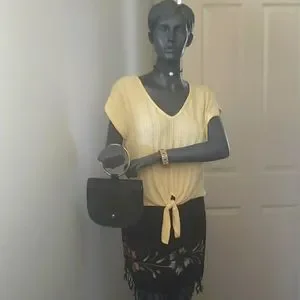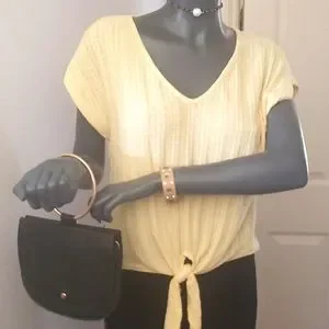This is such a soft sassy shirt sz small that has that eye catchy tie hanging from the waist. If ur looking for that calm yellow pastel to add to ur ward robe, this look is a must💛....make me an offer and I may give a P💋SH counter offer...don't be shy, give a try