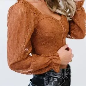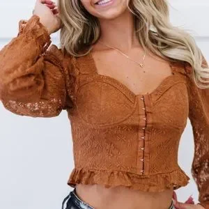 Chocolate USA Lace Corset Flounce Sleeve Crop Top