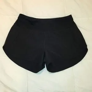 These are mid-rise, 2.5" shorts in black. No longer available online. Excellent condition, no flaws, smoke-free home.