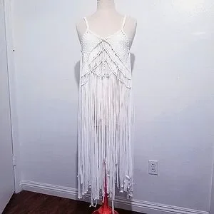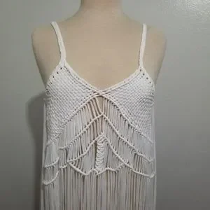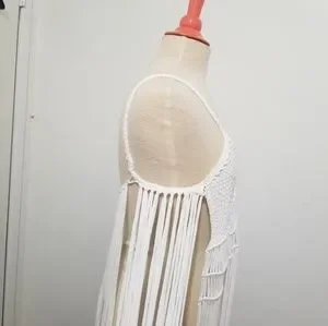 White Braided Fringe TOP, NWT, bohemian, boho, festival, swim cover up, crochet