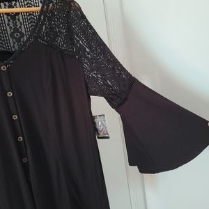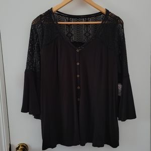 Torrid || 00 Super Soft Lace Black Bell Sleeve Button Up Top