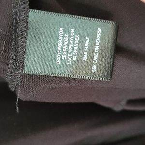 Black. Super soft and incredibly flattering bell sleeves. Lace upper and princess seams that streamline your figure.