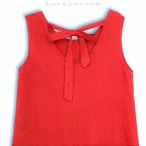NWT Rosemarine Made In Italy Linen Crochet Hem Bow Tie Back Midi Dress