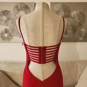 La Femme Caged Strappy-Back Gown size 6 in Red.