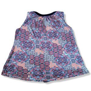 RXB Sleeveless Boho Print Rayon Pullover Tunic Top w/ Tassels Sz M