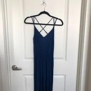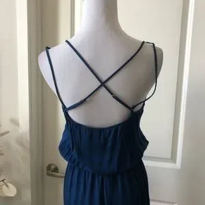 Arden B strappy blue jumpsuit with crossback adjustable straps. Elastic blouson waist. Approximately 29.5” inseam. 100% rayon. Excellent condition with no flaws.