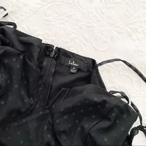 NWOT Lulus Romantic Spot Black Polka Dot Mesh Tiered Midi Dress