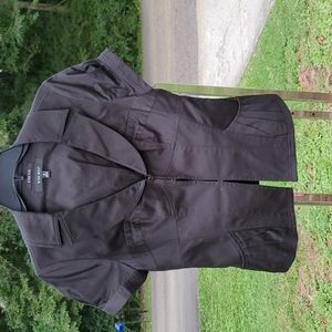 Nine West stretch, size 4, cap sleeve, hook front closure top with side pleated pockets.