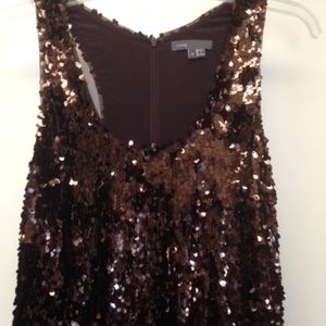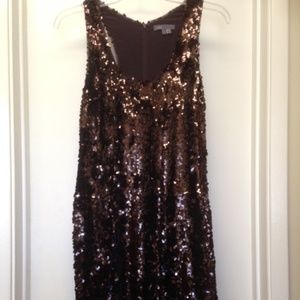 Beautiful brown sequin racerback mini dress from VINCE, Sz 4... tried on but never worn. Excellent condition.