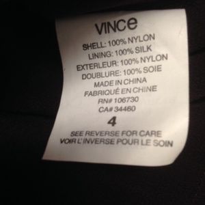 Rear zip closure. Shell is 100% nylon. Lining is 100% silk. Hand wash cold.