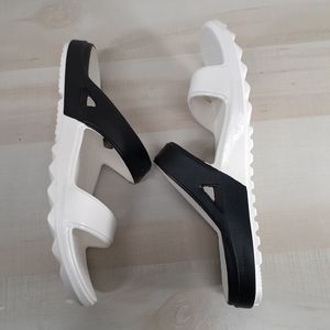 Spenco Fusion Black & White Slide Sandals Womens Size 10 Wide.