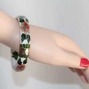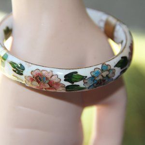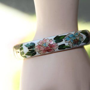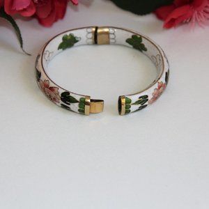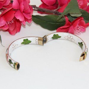 Vintage White Cloisonne Hinged Bangle