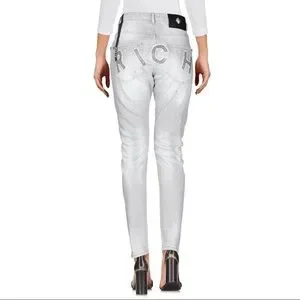 ⭐️ JOHN RICHMOND ⭐️HIGH WAISTED LIGHT GREY DENIM WASH W/BEADED BACK SIZE: (4) 27