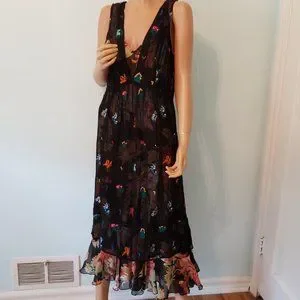 NWT Anthropologie Floreat two pieces Embroidered Dress. The bottom layer can be worn as a dress on its own, The sheer Embroidered layer can be worn over this dress or other things for versatility.
