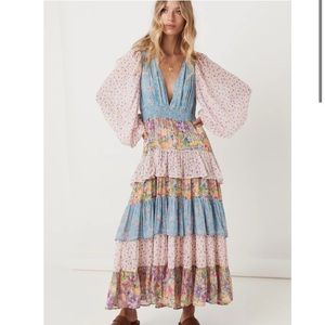 This incredible gown is what Spell dreams are made of, introducing the Dolly Ra-Ra Gown. This stunning new style is the result of yet another ‘Spelly gone rouge’ moment and we are so happy she did! Our design team drew inspiration from the nostalgia of eras past for this stunning style. A cut and sew patchwork of three contrasting floral yardages, billowing sleeves, a plunging V neckline leading into a shirred waist and voluminous skirt of layered frills and gathers. For the Dolly Ra-Ra Gown, more is more and less is simply not an option!