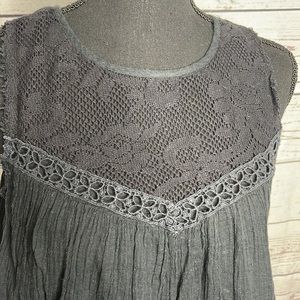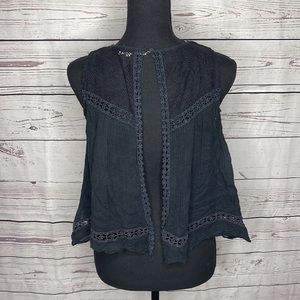 Free People Black Crocheted Neck Loose Fit Tank Sz XS!