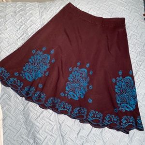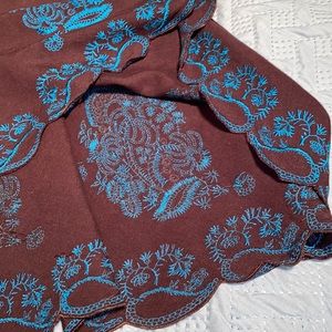 NY Collection Scalloped hem embroidered a-line flare skirt brown turquoise PM