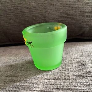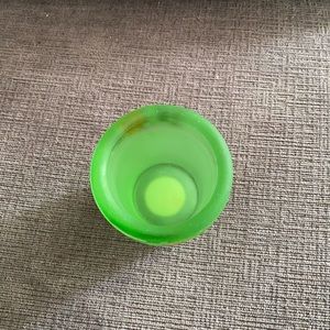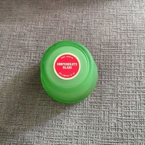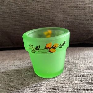 Vintage Frosted Green Confederate Glass Hand Painted Toothpick Tealight Votive Candle Holder. Signed With Artist Initials BS. GUC with no chips or cracks or missing paint. Original Sticker on Bottom.