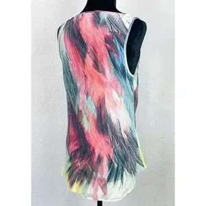 Warehouse Silk Colorful Abstract Feather Print Tank Top