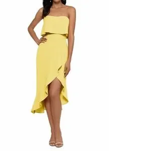 Xscape Women's Dress Yellow Size 6 Strapless Crepe Ruffled High-Low