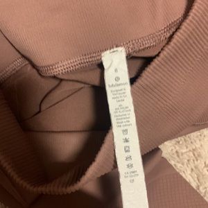 Size 8 lululemon leggings. Muted pink color. Great, like new condition! Worn twice. Washed on delicate and hung to dry. Thicker material. Full length.