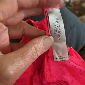 Here is a sexy Victoria’s Secret Hot Pink stretch lace lingerie. Lightly padded cups with tiny pink bow in between cups, ruffles at bottom and a gorgeous big ruffle at back. Size S- see photo for sizing info. Adjustable straps. EUC. Get on your Victoria’s Secret today!❤️