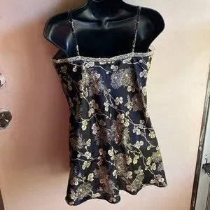 Here is a beautiful Victoria’s Secret black and bronze floral motif with lace trim.adjustable straps non padding at bust with a black ribbon tie under bust. EUC. 100% polyester. Get on your Victoria’s Secret’s sexy lingerie today. ❤️