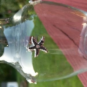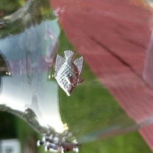 Clear glass EUC vase upcycled and embellished with a helm for a boat, a fish, a starfish, and a mermaid. All pieces are silver, some with black detailing, and 2 with rhinestone.