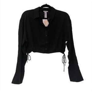 New with tags Savage x Fenty Woven Voile Monogram Sleep Crop Shirt with Drawstring