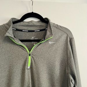 Men’s Dri-Fit Nike Zip Pullover in excellent condition. Size medium. Color grey. See pictures of tags for fabric details and care instructions. Please comment with any questions