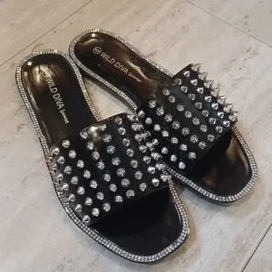 Stunning Wild Diva Lounge Studded Rhinestone Slides